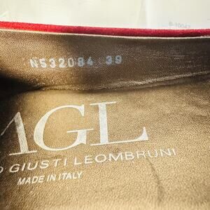 AGL Shoes Women 9 Red Suede Metal Grommets Slip On Ballet Flat Comfort Round Toe