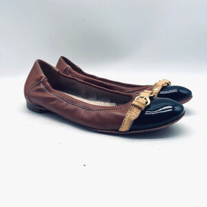 AGL Shoes Womens 36.5 US 6.5 Brown Black Ballet Flats Cap Toe Buckle Monika