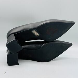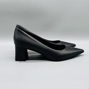 AGL Shoes Womens 8 Black Leather Pumps Pointed Toe Slip On Classic Block Heel