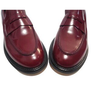 Luxurious and timeless, these AGL Sirena penny loafers are crafted in rich burgundy patent leather with a classic moc-toe silhouette. Handmade in Italy, they balance sleek polish with everyday comfort — the perfect mix of sophistication and ease. Ideal for fall styling, office chic, or elevated casual wear.