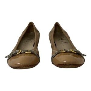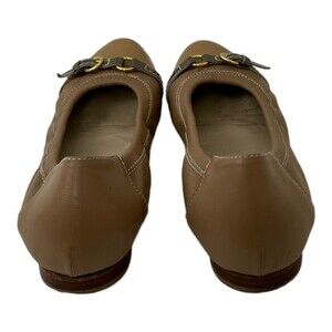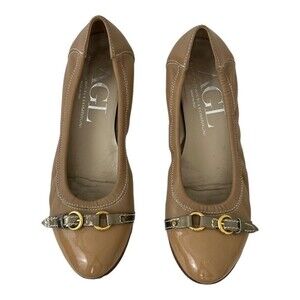 AGL Size 38.5 US 8.5 Tan Beige Leather Buckle Cap Toe Slip On Ballet Fla…