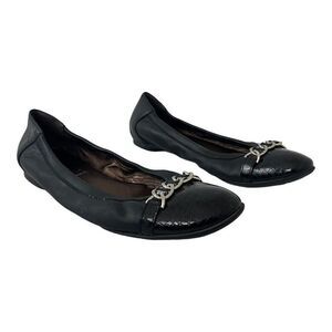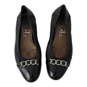 AGL Size 41.5 US 11.5 Black Patent Cap Toe Chains Leather Ballet Flats