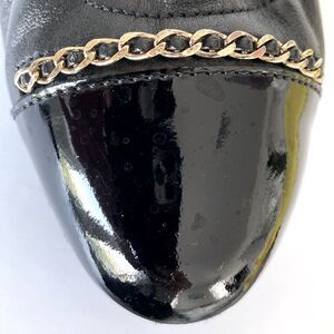 AGL Ballet Flats Black Patent Cap Toe Gold Tone Chain Accent