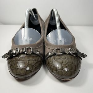 AGL Suede Animal Print Ballet Flats Cap Toe Women's 36.5 EU 6 US Made in Italy
