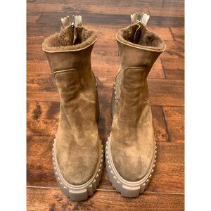 AGL Tiggy Brown Suede Fleece Lined Platform Block Heeled Boots, Size 40.5 | 10.5