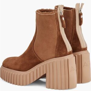 A chunky geo-textured platform and heel, designed exclusively for AGL, elevate this colorblocked bootie in soft, ultrawarm shearling-backed suede.