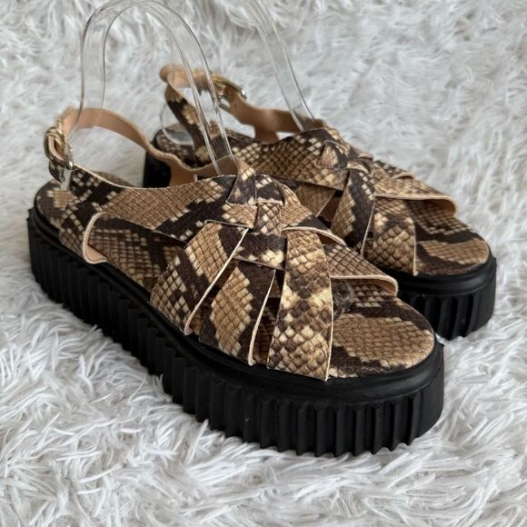 AGL Violante Snake Print Leather Sandals with Lug Platform Sole Size 10.5