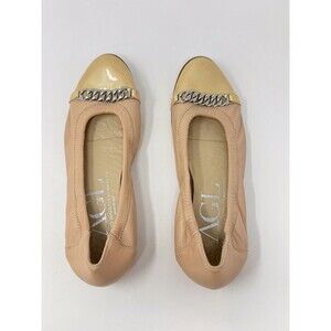 AGL Women Ballet Flats Beige Leather Slip On Chain Italian Ballerina 38.5 US 8.5
