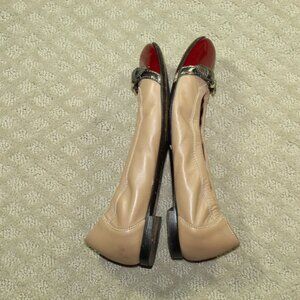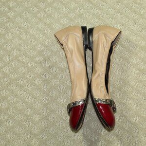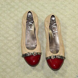 AGL Women's Ballet Flat Size US 6.5 Taupe Maroon Patent Toe Cap Buckle Italian