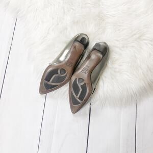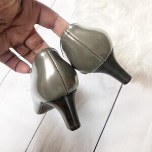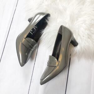 🆕 AGL Women's Gray Pointed‎ Toe Heeled Patent Leather Slip On Pumps Pewter