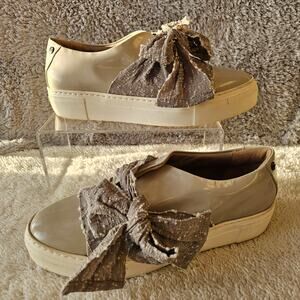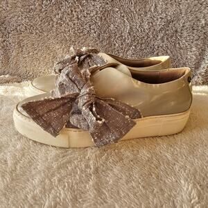 AGL Women's Patent Leather Oversized Bow Platform Slip On Sneakers Size 8 39