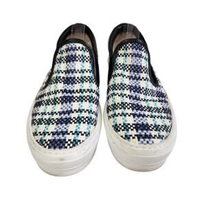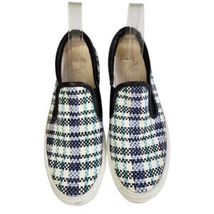 AGL Womens Plaid Woven Slip On Shoes Size US 7.5 EU 37.5 Leather Blue Black