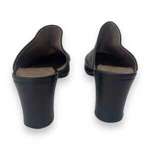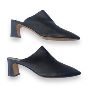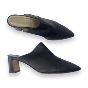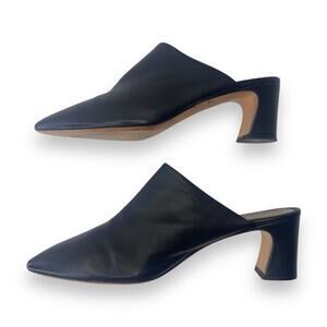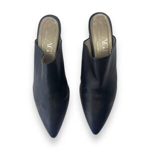 AGL Women's Pointed Toe Block Heel Mules Size EU 40 US 10 Italian Black Leather