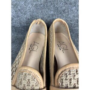 AGL Womens Size 8.5 Beige Woven Leather Loafers Made in Italy D548006 EU 38.5