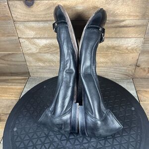 AGL Womens Sz 38.5 / 8.5 Black Leather Cap Toe Horsebit Loafer Ballet Flat Shoes