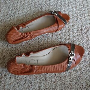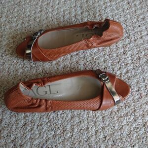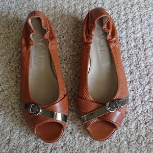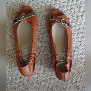 AGL brown leather open toe wedges size 8