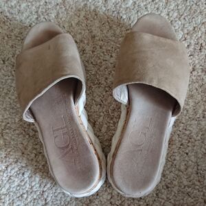The minimalism of the soft suede band is combined with a sole boasting a conceptual graphic design rendered in delicate black and white micro rubber with a cork insert and an unexpected ultra-luxurious detail: