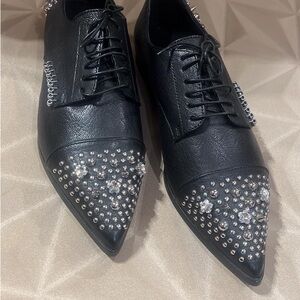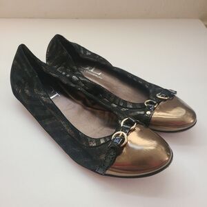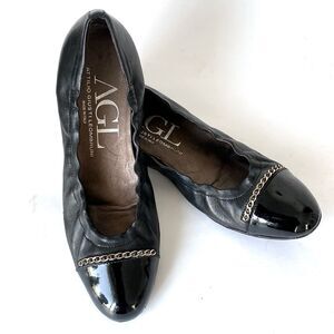 AGL, size 9.5, Black Flats with Silver Accents.
