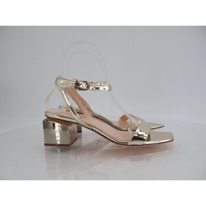 AGL 60mm Sandals Womens Size 36 6 Gold Patent Leather Square Heel Ankle Strap