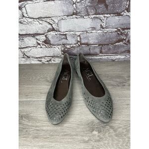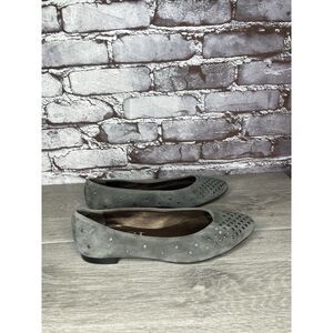 AGL Grommet Gray Suede Leather Studded Pointed Toe Flats Women’s Sz 38EU/7.5M US