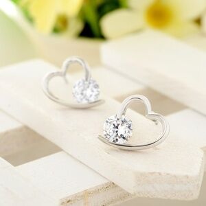**AGNELLA* Silver Zircon Heart Shape Stud Earrings