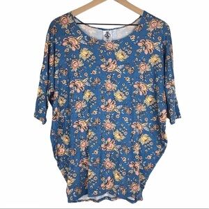 AGNES & DORA Dolman Tunic Top Blue Floral For the Love Cornflower Size Small NWT