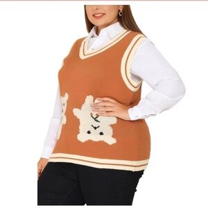 AGNES ORINDA Women's Plus Size V-Neck Teddy Bear Knit Sweater Vest (3X) So cute!