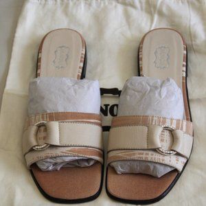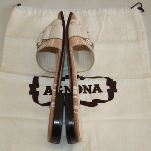 AGNONA Made in Italy Sandals Slides Flats Cream Leather Tan Canvas Size EU 38