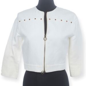 Condition: EXCELLENT, Never Worn. Shading from the light can be seen in some photos causing a yellow tint. However, There is NO tint or stains on this jacket.