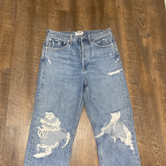 AGOLDE 100% ORGANIC COTTON RIPPED KNEE BUTTON FLY HI WAISTED JEANS MADE IN USA