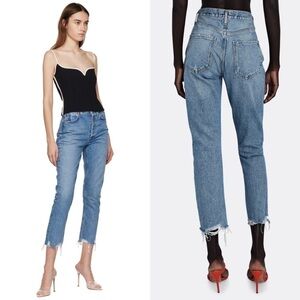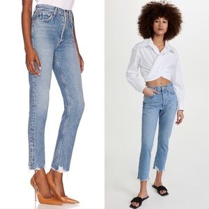AGOLDE 90s High Rise Distressed Button Fly Raw Hem Ankle Crop Straight Jeans 26