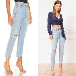 AGOLDE 90s High Rise Distressed Light Wash Denim Button Fly Straight Leg Jean 26