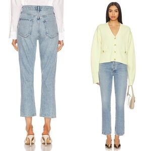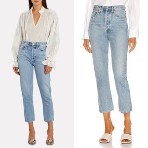 AGOLDE 90s High Rise Light Wash Denim Button Fly Ankle Cropped Straight Jeans 26