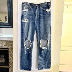 AGOLDE '90s High-Rise Loose Fit Jean - Psyche Straight Cotton Distressed Size 29