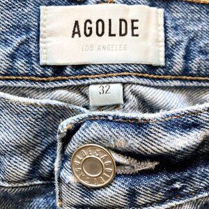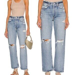 AGOLDE 90s Jeans Distressed Ripped Midrise Loose Fit Isolate Blue