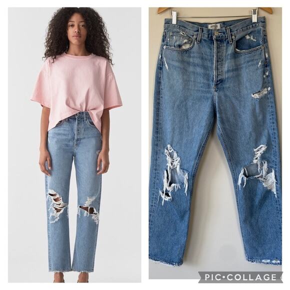 AGOLDE - 90's Mid Rise Loose Fit in Fall Out Distressed Jeans Size 29