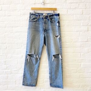 AGOLDE || 90's Mid Rise Loose in Isolate Wide Leg Distressed Jeans Blue 29