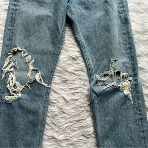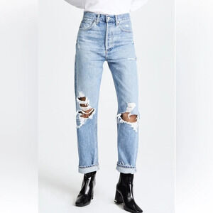 AGOLDE 90s Mid Rise Straight Fit Jeans Fall Out Distressed Denim Casual 24