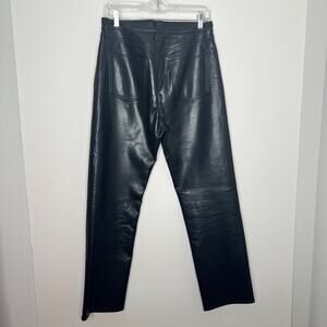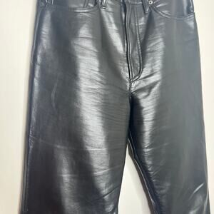 AGOLDE 90`s Pinch Waist Recycled Leather Straight Leg Black Womens Size 28