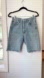 Looks Like: Vintage marbled light indigo denim short with fading, whiskering and a raw hem