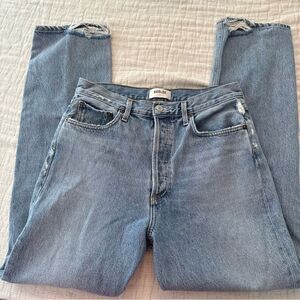 AGOLDE 90s Pinch Waist High Rise Straight Light Wash Jeans Size 28 Distressed