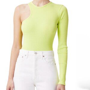 AGOLDE Bea Cutaway One Shoulder Ribbed Bodysuit Fondant Lilac Lime Green Size XS