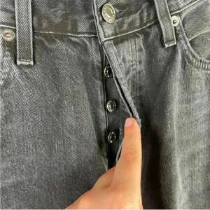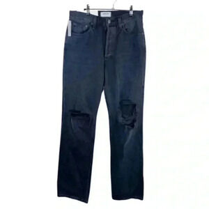 AGOLDE Black Lana Mid Rise Distressed Straight Leg Jean