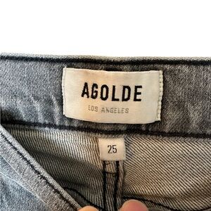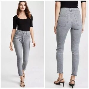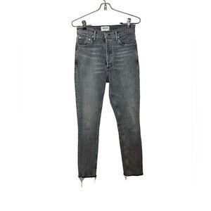 AGOLDE Button Fly Skinny Nico High Rise Ankle Raw Hem Slim Jean Grey Risk sz 25