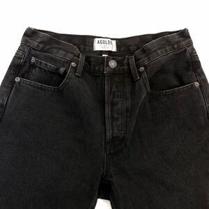 AGOLDE Carrie Knee Length Slim Shorts High Rise A119-1084 Black Size 27