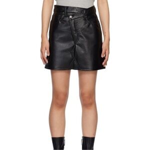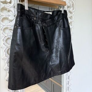 AGOLDE Criss Cross Leather Skirt in Detox w/ Asymmetrical Button Detail Sz 28