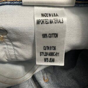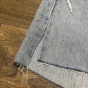 -Condition: these were originally the 90's Mid Rise Loose Fit  jeans that have been cut off to make shorts, there are slits on either side and the thread is loose at the top of them--tape measure shows the current length of the slits (see photos)