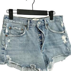 Item: AGOLDE Distressed Parker Shorts Women's Button Fly Light Wash Raw Hem