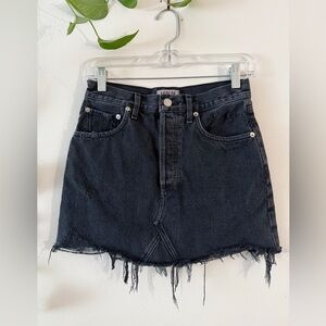 AGOLDE Faded Black Denim Raw Edge Miniskirt 100% Cotton