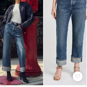 AGOLDE Fran Medium Wash Straight Leg Cuffed Hem Button Up Jeans Size 24